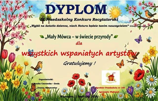 - pamiątkowe dyplomy – dla każdego „Małego Mówcy”